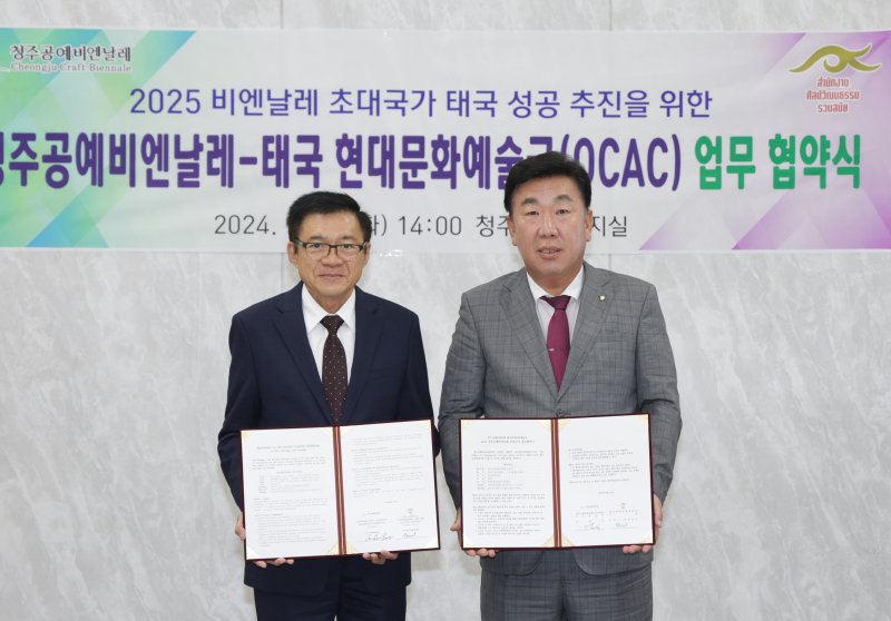 청주공예비엔날레조직위원회는 10일 시청 임시청사에서 태국 현대문화예술국과 비엔날레 초대국가 공동추진을 위한 업무협약을 했다.