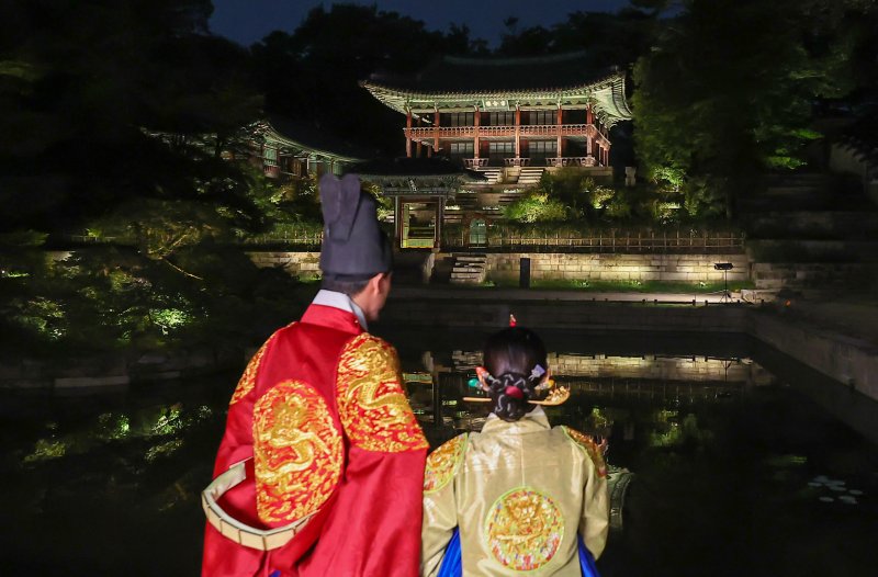 11일 오후 서울 종로구 창덕궁에서 열린 달빛기행 사전행사에서 왕과 왕비가 부용지를 바라보고 있다. 2024.9.11/뉴스1 ⓒ News1 김진환 기자 11일 오후 서울 종로구 창덕궁에서 열린 달빛기행 사전행사에서 참가자들이 전통공연을 관람하고 있다. 2024.9.11/뉴스1 ⓒ News1 김진환 기자 11일 오후 서울 종로구 창덕궁에서 열린 달빛기행 사전행사에서 참가자들이 전통공연을 관람하고 있다. 2024.9.11/뉴스1 ⓒ News1 김진환 기자 11일 오후 서울 종로구 창덕궁에서 열린 달빛기행 사전행사에서 참가자들이 궁내를 들러보고 있다. 2024.9.11/뉴스1 ⓒ News1 김진환 기자 11일 오후 서울 종로구 창덕궁에서 열린 달빛기행 사전행사에서 참가자들이 인정전을 스마트폰으로 촬영하고 있다. 2024.9.11/뉴스1 ⓒ News1 김진환 기자 11일 오후 서울 종로구 창덕궁에서 열린 달빛기행 사전행사에서 참가자들이 궁내를 들러보고 있다. 2024.9.11/뉴스1 ⓒ News1 김진환 기자 11일 오후 서울 종로구 창덕궁에서 열린 달빛기행 사전행사에서 참가자들이 인정전을 스마트폰으로 촬영하고 있다. 2024.9.11/뉴스1 ⓒ News1 김진환 기자 11일 오후 서울 종로구 창덕궁에서 열린 달빛기행 사전행사에서 참가자들이 궁내를 들러보고 있다. 2024.9.11/뉴스1 ⓒ News1 김진환 기자 11일 오후 서울 종로구 창덕궁에서 열린 달빛기행 사전행사에서 참가자들이 대금 연주를 관람하고 있다. 2024.9.11/뉴스1 ⓒ News1 김진환 기자 11일 오후 서울 종로구 창덕궁에서 열린 달빛기행 사전행사에서 참가자들이 궁내를 들러보고 있다. 2024.9.11/뉴스1 ⓒ News1 김진환 기자 11일 오후 서울 종로구 창덕궁에서 열린 달빛기행 사전행사에서 참가자들이 궁내를 들러보고 있다. 2024.9.11/뉴스1 ⓒ News1 김진환 기자 11일 오후 서울 종로구 창덕궁에서 열린 달빛기행 사전행사에서 참가자들이 궁내를 스마트폰으로 촬영하고 있다. 2024.9.11/뉴스1 ⓒ News1 김진환 기자 11일 오후 서울 종로구 창덕궁에서 열린 달빛기행 사전행사에서 참가자들이 인정전을 스마트폰으로 촬영하고 있다. 2024.9.11/뉴스1 ⓒ News1 김진환 기자 11일 오후 서울 종로구 창덕궁에서 열린 달빛기행 사전행사에서 참가자들이 전통공연을 관람하고 있다. 2024.9.11/뉴스1 ⓒ News1 김진환 기자 11일 오후 서울 종로구 창덕궁에서 열린 달빛기행 사전행사에서 참가자들이 부용지를 들러보고 있다. 2024.9.11/뉴스1 ⓒ News1 김진환 기자 11일 오후 서울 종로구 창덕궁에서 열린 달빛기행 사전행사에서 왕과 왕비가 부용지 앞을 지나고 있다. 2024.9.11/뉴스1 ⓒ News1 김진환 기자 (서울=뉴스1) 김진환 기자 = 국가유산청 궁능유적본부와 국가유산진흥원이 오는 12일부터 11월 10일까지 매주 목~일요일 1일 6회(1부 오후 7시·오후 7시 5분·오후 7시 10분, 2부 오후 8시·오후 8시 5분·오후 8시 10분/100분 간) 창덕궁의 밤을 밝히는 '2024년 창덕궁 달빛기행'을 진행한다.