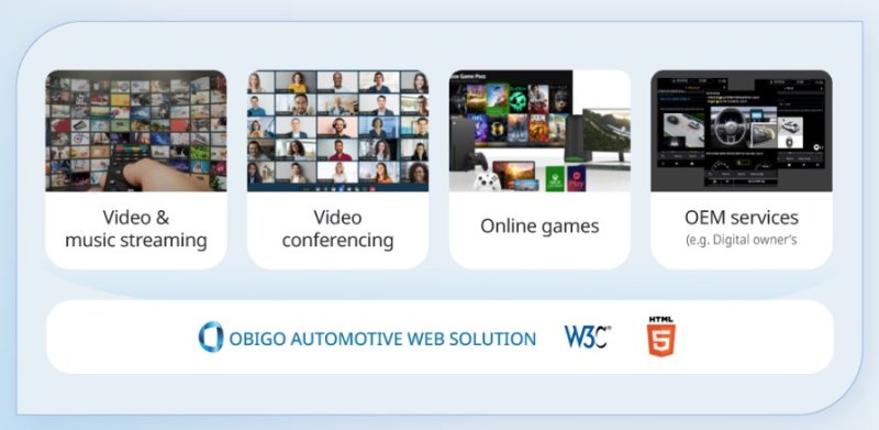 이번 행사에서 오비고는 북마크 기능과 차량용 콘텐츠를 강화한 'AGB 브라우저'와 자체 앱스토어인 '오 스토어(O-Store)'를 공개했다. 오비고의 차세대 제품들은 안드로이드 오토모티브 운영체제(AAOS)를 포함해 대부분의 차량용 운영체제와 높은 호환성을 제공한다.