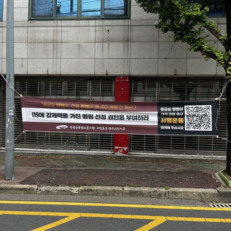 "119에 병원 선정 권한달라"…'응급실 뺑뺑이' 대책 촉구소방노조, 현수막 걸고 온오프라인 대국민 서명 운동
