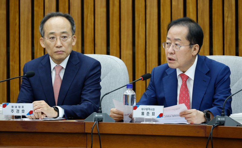한편, 홍 시장은 이날 국회를 찾아 대구·경북 지역민생 예산정책협의회에 참석했다. 그는 기자들과 만나 당내 현안에 대한 입장을 묻는 질문에 "오늘은 대구·경북 예산정책협의회에 왔기 때문에 드릴 말씀이 없다"고만 했다.