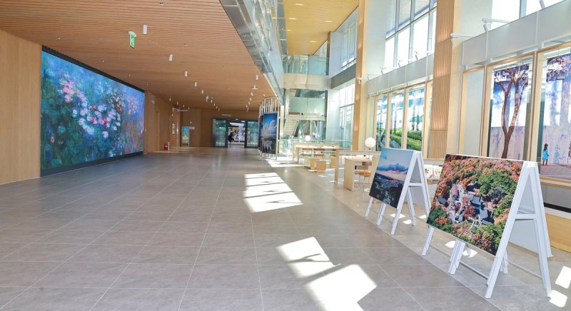 미디어 아트월 맞은편에는 전시공간과 휴식공간이 조성됐다.