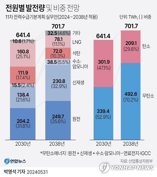 앞서 전기본 총괄위는 태양광·풍력 발전과 원전을 함께 늘려 오는 2038년까지 국내에서 만들어지는 전기 중 70% 이상을 '무탄소 전기'로 채운다는 내용을 골자로 한 11차 전기본 실무안을 발표한 바 있다.