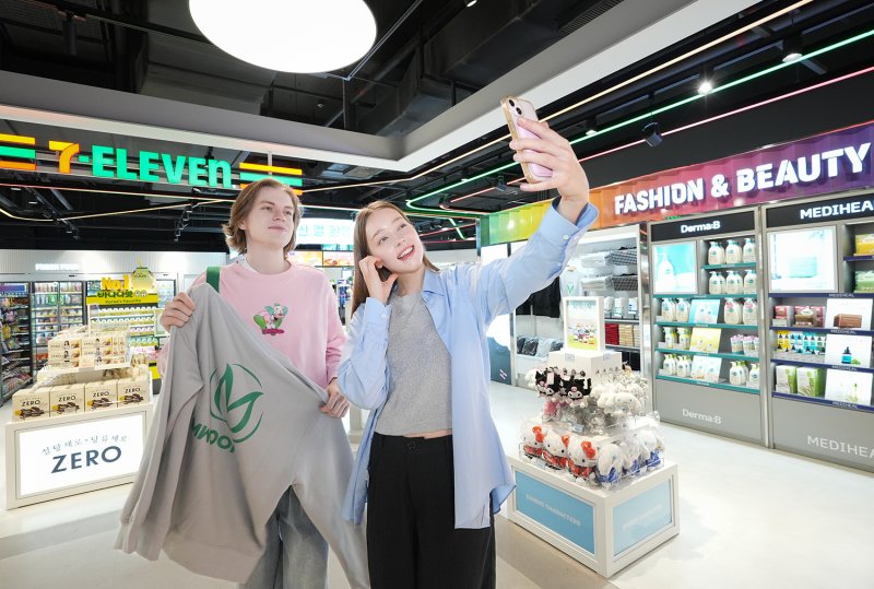 세븐일레븐은 지난 27일 패션·뷰티 콘텐츠를 메인으로 K푸드, 체험형 놀이공간, PB 전시존 등이 집결된 '세븐일레븐 동대문던던점'을 새롭게 선보였다.