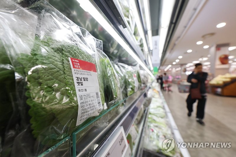 지난달 30일 서울 중구의 한 대형마트에서는 10장이 든 '경남 밀양 소용량 깻잎'을 한장에 179원에 팔고 있었다.