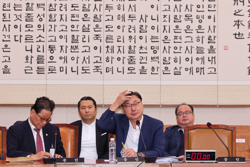 정 위원장은 "국회증언감정법률 15조는 정당한 이유없이 출석하지 않은 증인을 고발해야 한다고 의무사항으로 규정하고 있다"며 "불출석 증인에 대해선 사유 정당성을 판단해 고발 등 필요한 법적조치를 하겠다"고 했다.