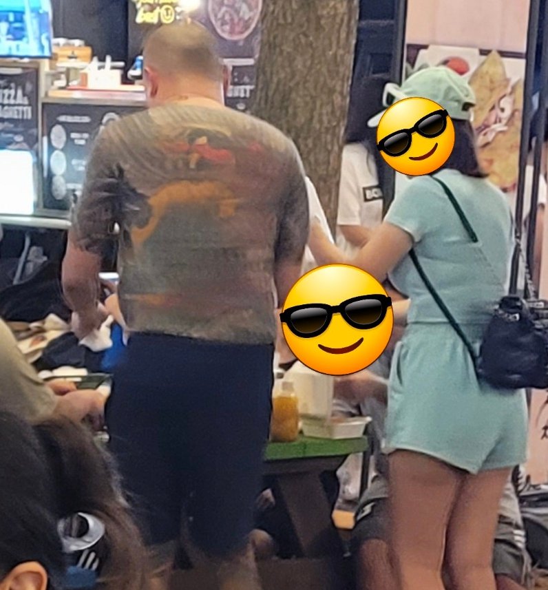 사진 속 남성은 상의를 탈의한 채 야시장을 활보하고 있다. 그의 상반신부터 하반신까지 전신에는 일명 '조폭 문신'으로 불리는 '이레즈미'(야쿠자 문신을 가리키는 일본어)가 새겨져 있다.