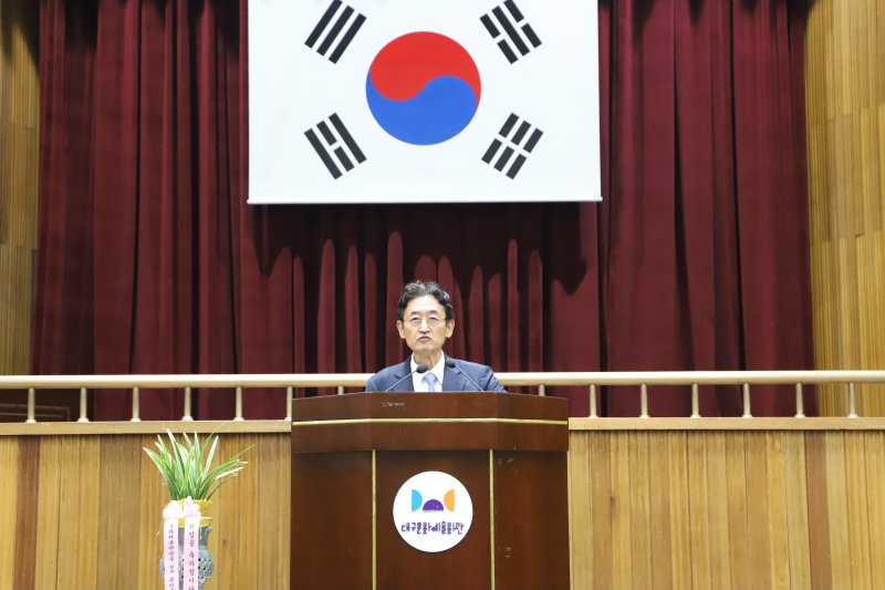 (대구=뉴스1) 남승렬 기자 = 대구문화예술진흥원은 7일 대구문화예술회관 달구벌홀에서 박순태 2대 원장 취임식을 열었다.