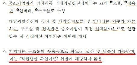 이 업체들의 대부분이 태양광 설비의 ‘지지대’를 외주 제작했다며 직접생산기준을 위반했다는 이유다.