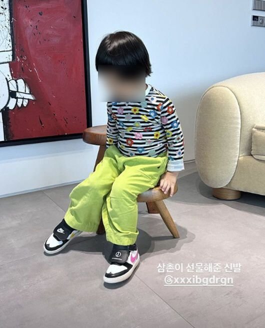 지드래곤이 조카를 위해 신발을 선물했다. 해당 신발은 스포츠 용품 브랜드 나이키와 지드래곤 패션 브랜드 피스마이너스원의 협업 제품이다.