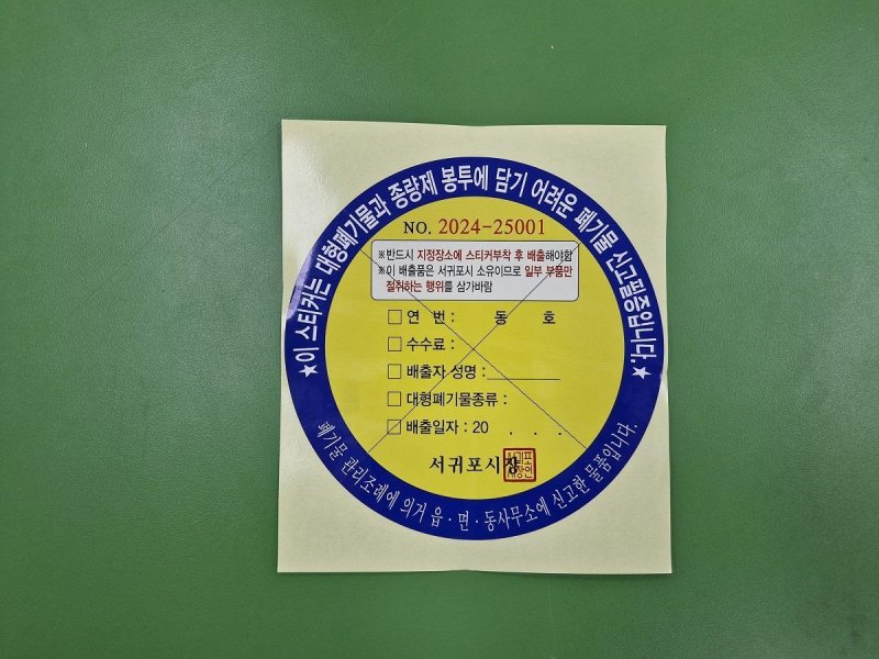 (제주=뉴스1) 오현지 기자 = 수시로 민원이 접수되는 대형 폐기물 스티커 도난을 막기 위해 서귀포시가 대책을 내놨다.