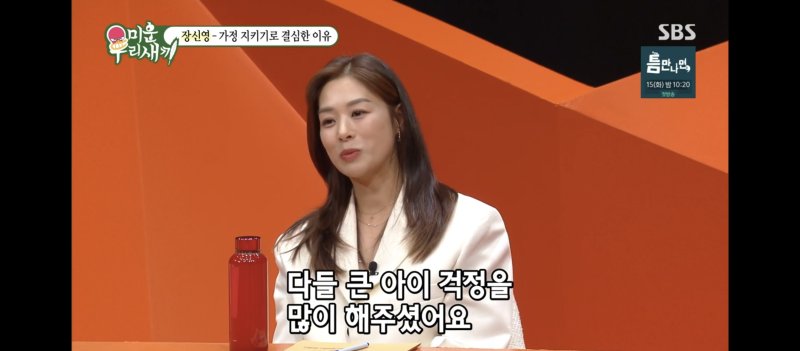 장신영은 "어떤 입장을 표명할 수 없는 상황에서 여러 가지 얘기가 많이 보이더라"고 안타까워했다. 특히 "아이가 크다 보니까 잘못된 정보로 상처를 받을까 많이 걱정했다"고 전했다.