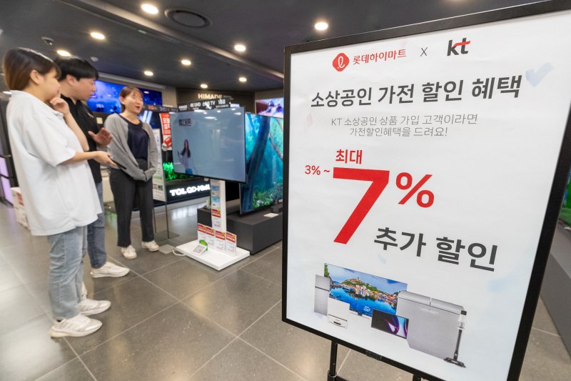 (서울=뉴스1) 김민재 기자 = KT(030200)가 롯데하이마트(071840)와 제휴해 소상공인 고객에게 특별 가전 할인 혜택을 제공한다고 14일 밝혔다.