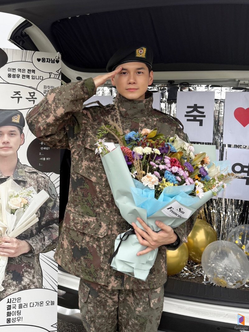 옹성우는 이날 소속사 판타지오를 통해 "나라를 위해 헌신하시는 간부님들과 용사들 그리고 전역하신 많은 선배님께 존경심이 들었다"라며 "살면서 하지 못할 경험과 다양한 감정들을 마주했던 시간이었다, 기다려주신 위로(공식 팬 클럽명), 가족, 친구들 덕에 힘을 얻었다"라고 제대 소감을 밝혔다.