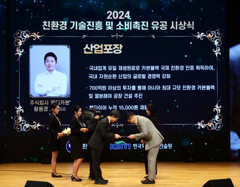 엘디카본은 기존 카본블랙 제조 비용의 30%에 불과한 경제성과 무산소 열분해를 통해 탄소 배출량을 80% 이상 낮춘 성과 등을 토대로, 지난 10일 열린 '친환경 기술진흥 및 소비촉진 유공' 시상식에서 황용경 대표가 산업포장을 수상했다. 지난 2021년 그린뉴딜 100대 유망기업에 선정된 바 있으며, 황 대표는 2022년 동 시상식에서 환경부 장관상을 받았다.