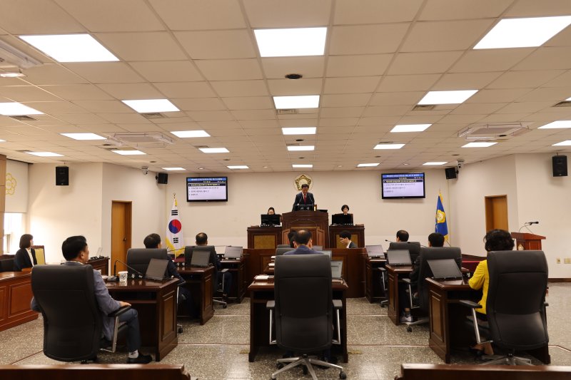 [산청=뉴시스] 서희원 기자 = 경남 산청군의회(의장 김수한)는 16일 본회의장에서 집행기관 공무원 등이 참석한 가운데 제300회 임시회를 열고 6일간의 회기에 들어갔다.
