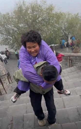 [서울=뉴시스]유화연 인턴 기자 = 어머니를 업고 곳곳을 여행하는 한 중국 남성의 영상이 화제가 되고 있다.
