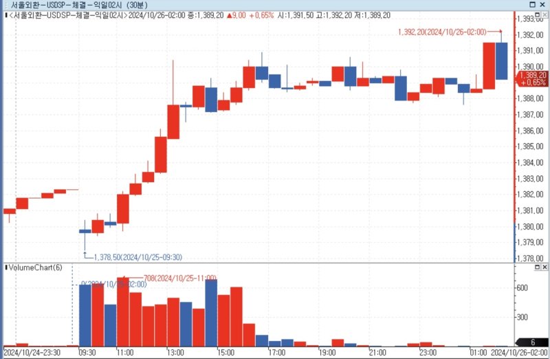 이에 달러-원 환율도 오전 1시 53분 1,392.20원까지 올라서면서 장중 고점을 기록했다. 종가는 1,390원 선 턱밑에서 찍혔다.