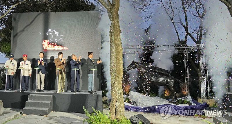 (제주=연합뉴스) 박지호 기자 = 한미동맹의 상징이자 제주마의 우수성을 세계에 알린 호국영웅마 '레클리스(Reckless)'의 동상이 제주에 세워졌다.