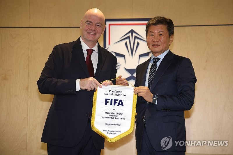 인판티노 회장은 축구회관에서 정몽규 대한축구협회장, 김정배 상근부회장, 내년 FIFA 클럽 월드컵 참가팀인 울산 HD의 김광국 대표이사 등과 차를 마시며 대화를 나눴다.