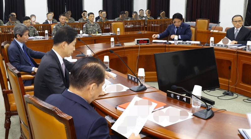 30일 서울 여의도 국회에서 원천희 국방정보본부장(가운데)과 문상호 정보사령관(왼쪽), 박종선 777사령관(오른쪽)이 참석한 가운데 정보위원회 국정감사가 열리고 있다. 2024.10.30/뉴스1 ⓒ News1 국회사진취재단