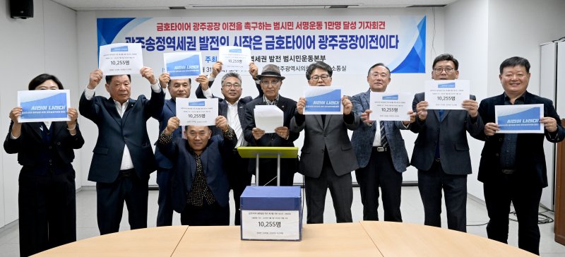 지난해 11월 광산구 23개 시민사회단체로 구성돼 출범한 '광주송정역세권 발전 범시민본부'는 금호타이어 광주공장 이전을 위한 1만255명의 시민 서명을 받아 광주시에 전달할 예정이다.