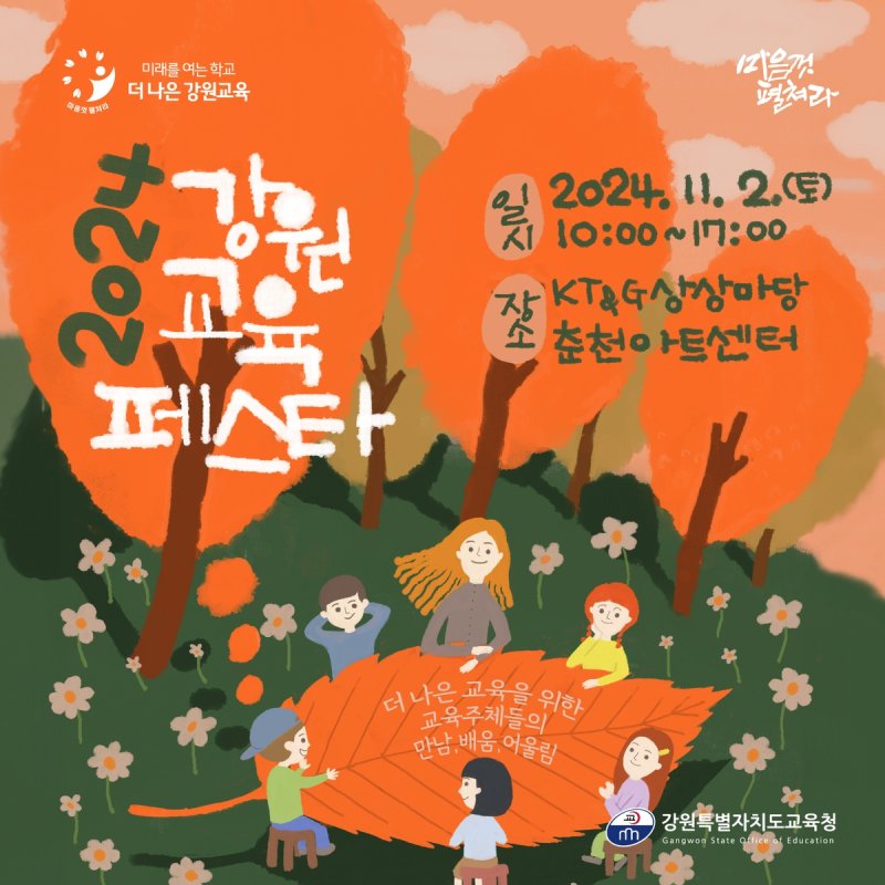 올해로 2회째를 맞는 이번 축제는 교직원과 학생, 학부모 간 소통과 협력 기회를 마련하고 강원교육에 관한 아이디어와 교육사례를 공유하며 더 나은 강원교육을 위해 노력하는 교육 주체들을 응원하고자 마련했다.