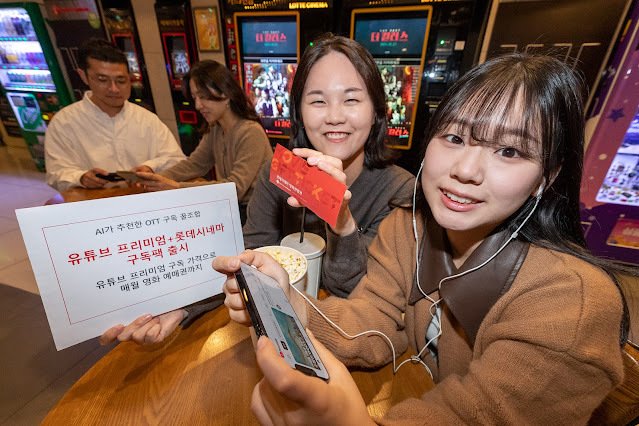 1일 KT에 따르면 '유튜브 프리미엄+롯데시네마' 구독 팩은 유튜브 프리미엄 이용권과 롯데시네마 1인 예매권을 제공하는 구독 상품이다. 월 이용료는 2만 7900원이다.