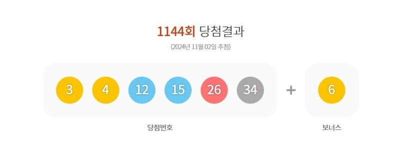 (서울=뉴스1) 정윤미 기자 = 2일 추첨한 1144회 로또 1등 당첨 번호는 '3·4·12·15·26·34'이다. 보너스 번호는 '6'이다.