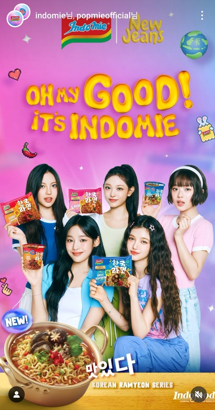 5일 관련 업계에 따르면 세계 최대 라면업체 가운데 하나인 인도네시아 인도푸드의 인도미는 지난달 31일 뉴진스를 글로벌 브랜드 앰배서더로 선정하고 '한국라면' 시리즈 3종을 출시했다.
