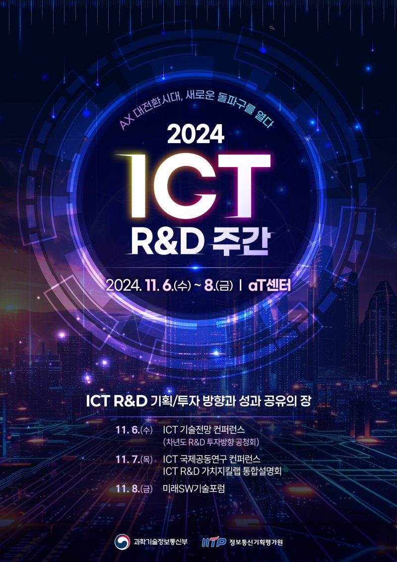 이날 개막식에서는 2025년도 ICT R&D 투자방향 및 AI반도체·양자·차세대통신·사이버보안 등 기술분야별 기술전망 컨퍼런스와 함께 내년 신규로 지원 예정인 후보과제를 미리 논의할 수 있는 정보교류회가 마련된다.