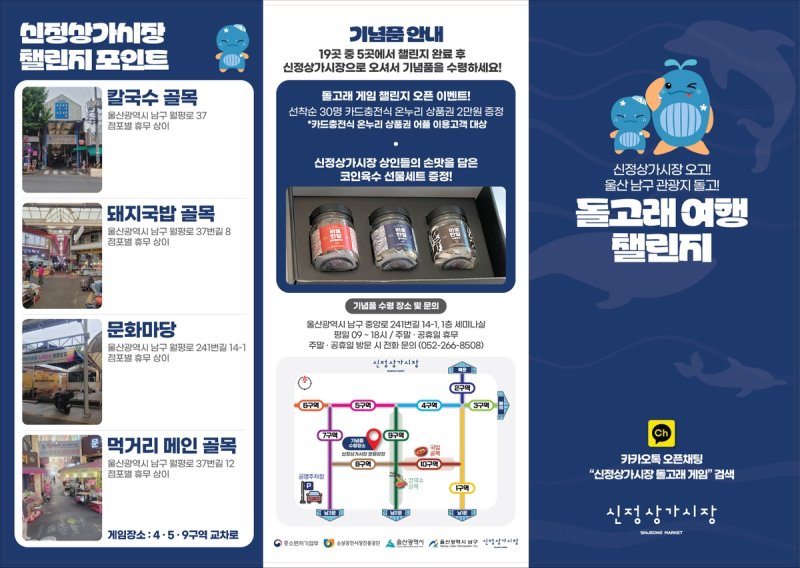 (울산=연합뉴스) 김용태 기자 = 울산시 남구는 50년 전통의 신정상가시장과 지역 대표 관광지를 연계한 '돌고래 여행 챌린지'를 운영한다고 6일 밝혔다.