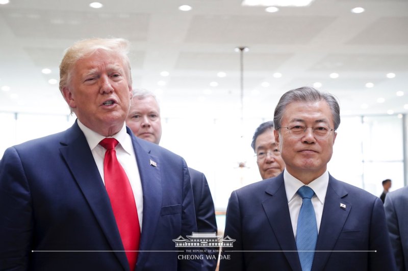 문 전 대통령은 또 트럼프 전 대통령을 '적대적인 상대와도 평화를 협상할 수 있는 용기 있는 지도자'라고 칭했다. 그러면서 "트럼프 대통령의 실용적인 리더십과 과감한 결단력에 의해 중단된 북미대화가 재개되고 한반도와 동북아의 평화가 더욱 굳건해지길 기대한다"고 했다.