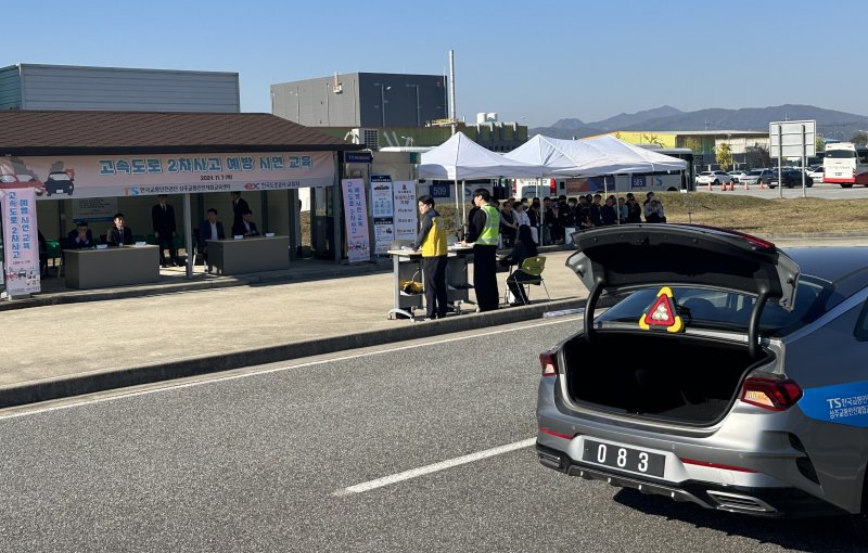 [서울=뉴시스] 홍찬선 기자 = 한국교통안전공단(TS)은 7일 경북 상주교통안전체험교육센터에서 한국도로공사 교통처와 함께 ‘고속도로 2차사고 예방 시연교육’을 실시했다고 8일 밝혔다.