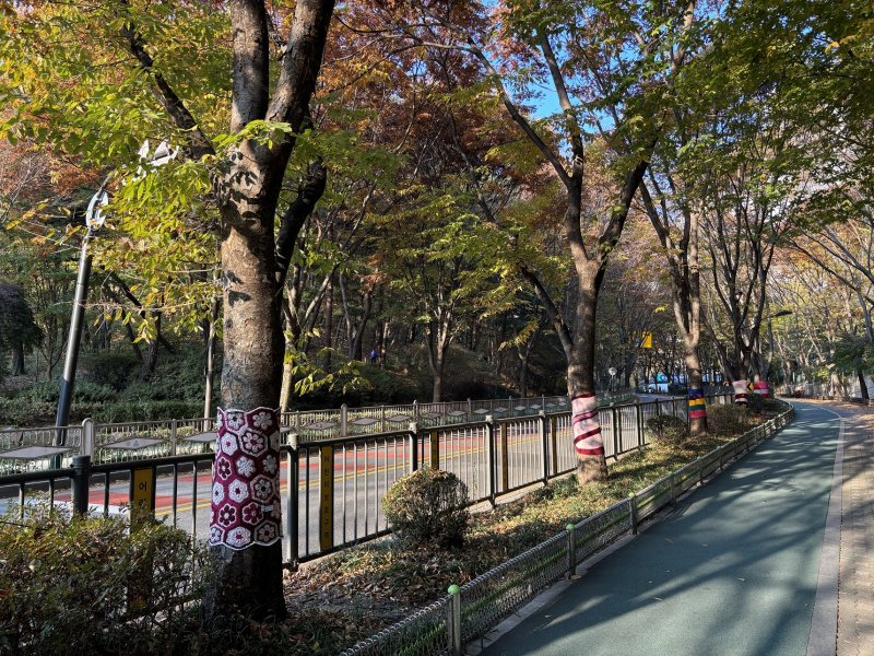 5~6년 전 처음으로 수릿길 일대에 가로수 형태로 심어진 느티나무 80여그루가 뜨개옷을 입기 시작했다, 그 후 계속 늘어나 올해는 140여그루가 알롯달록한 예쁜 옷을 입혔다. 나무들은 이 옷을 내년 2∼3월쯤까지 입는다.