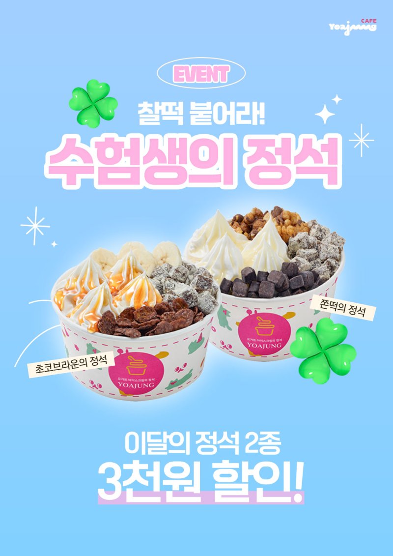 [서울=뉴시스]김민성 기자 = 요거트 아이스크림 브랜드 '요아정'(요거트아이스크림의 정석)은 2025학년도 수학능력시험을 치른 수험생들을 대상으로 '쫀떡의 정석으로 찰떡 붙자' 이벤트를 진행한다고 13일 밝혔다.