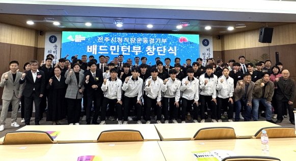 13일 전북자치도 전주시 국립유형유산원 국제회의장에서 ‘전주시청 직장운동경기부 배드민턴부 창단식’이 개최됐다. 이날 창단식에는 배드민턴 원로와 학생 및 실업팀 지도자, 협회 관계자, 초·중·고·대 연맹 관계자, 배드민턴 클럽 회원 등이 참석했다. 또 김인태 전주시 부시장과 시의원 등도 함께했다.