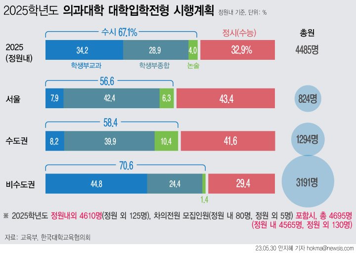 [세종=뉴시스]김정현 기자 = 정부의 대규모 증원으로 대학수학능력시험(수능) 성적이 비중 있게 활용되는 의과대학 정시 모집에도 변화가 예상된다.
