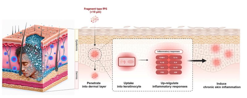 연구팀은 도포된 미세플라스틱이 피부조직의 진피 부분까지 도달함을 검증했고 해당 실험쥐 피부조직에서 미세플라스틱 처리 시 농도의존적으로 유전자 및 단백질의 발현이 증가함을 밝혀냈다.