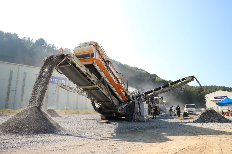 실증시험 결과, 모바일 크러셔 설비 스스로 골재의 품질을 인식하고 문제 발생 시 파쇄장치의 제어 값을 조절해 자율적으로 최적의 골재를 생산하는 공정 자동화 성과를 확보했다.