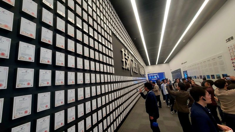 지난 20일 방문한 중국 선전(深圳) 본사의 전시관 중앙에는 "기술은 왕이고 혁신이 기본이다"이라는 메시지와 함께 그동안 BYD가 받은 친환경 전동화 관련 특허장이 벽면을 가득 채운 채로 방문객들을 맞이했다.