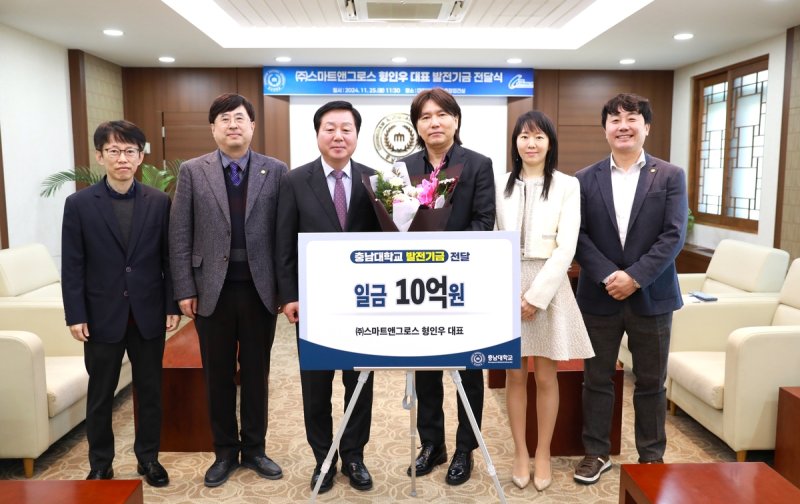 (대전=연합뉴스) 정찬욱 기자 = 충남대는 경영 컨설팅 기업 스마트앤그로스의 형인우 대표가 25일 신약전문대학원 발전기금 10억원을 기부했다고 밝혔다.