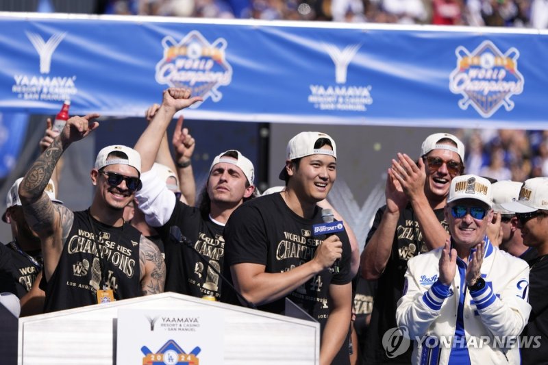 (서울=연합뉴스) 김경윤 기자 = 2024 미국프로야구 메이저리그(MLB) 월드시리즈 챔피언 로스앤젤레스 다저스가 역대 최고 배당금을 받는다.