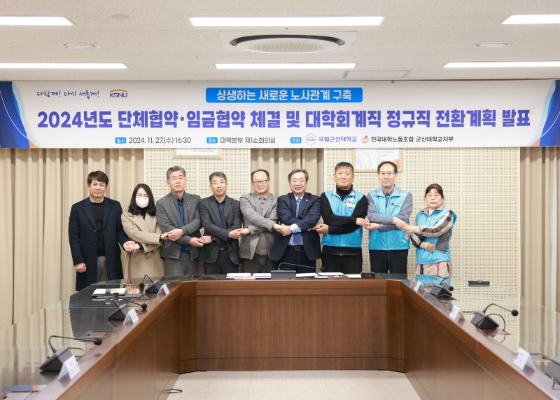 [군산=뉴시스]고석중 기자 = 전북특별자치도 국립군산대학교가 대학회계직 비정규직 직원의 정규직 전환을 추진하며, 새로운 노사협력 모델을 구축하고 있다.