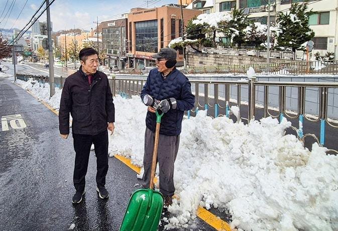 전 구청장은 관내 18개의 모든 동을 직접 방문해 제설 현장 점검에 나섰다.
