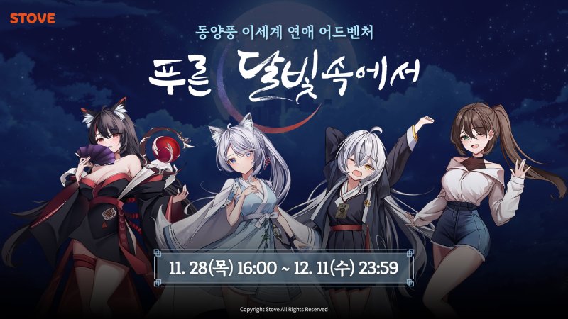 스토브는 ‘푸른 달빛 속에서’ 앞서 해보기 버전 출시를 기념해 12월 11일까지 일반판 2만900원, 시크릿 플러스판 2만3500원 특가로 판매한다. 구매자 전원에게는 캐릭터 일러스트가 그려진 패브릭 양면 티코스터를 지급한다.