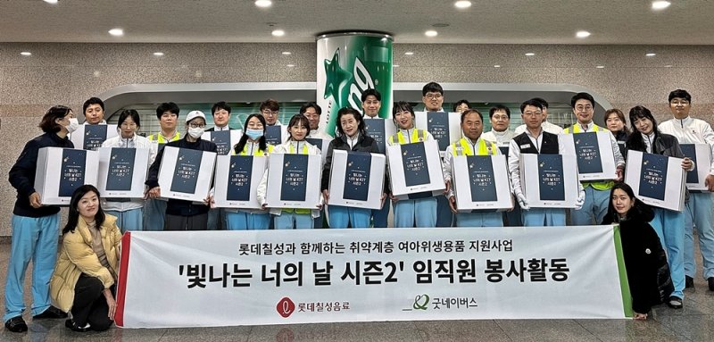 특히 올해는 롯데칠성음료 안성공장과 굿네이버스 경기중남지부가 함께 사업을 진행한다. 롯데칠성음료 안성공장의 임직원 20명은 약 3개월 분량의 여성용 위생용품·파우치·온누리 상품권·종합 영양제 등으로 구성된 키트를 직접 제작했다.
