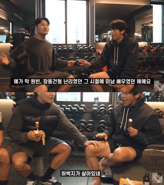 영상에는 댄스듀오 '터보' 출신 김종국과 고수가 헬스장에서 만난 모습이 담겼다.