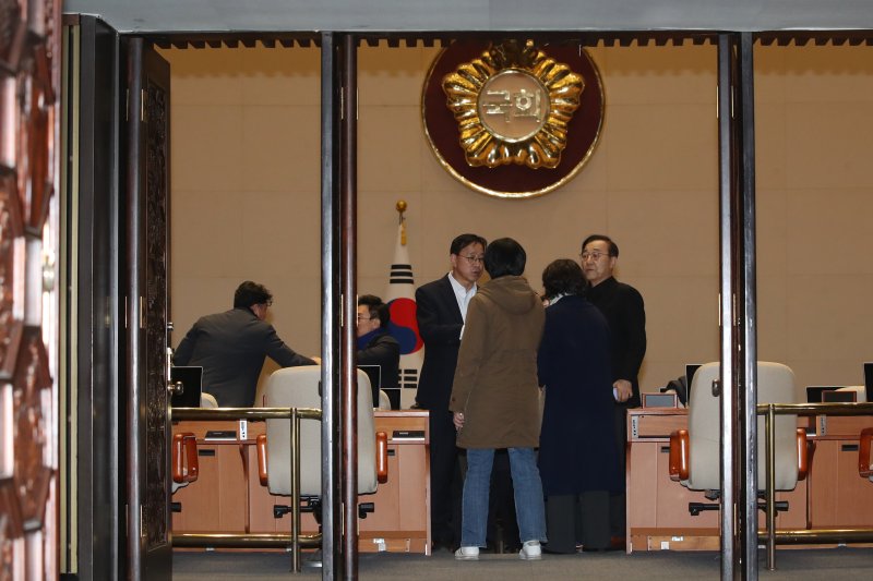 출입문 폐쇄 직전 우원식 국회의장은 국회에 진입했다. 여야 일부 의원들과 기자들도 국회에 진입했다.