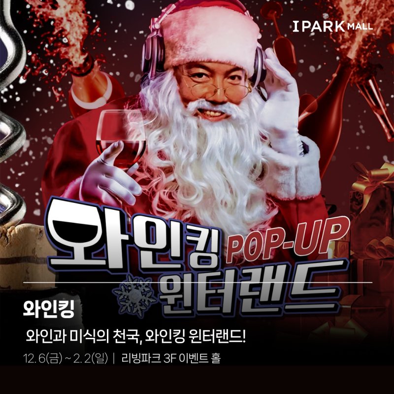 [서울=뉴시스]이현주 기자 = HDC그룹 내 유통 전문 기업인 HDC아이파크몰이 다가오는 연말을 맞이해 무제한 시음과 유명 맛집 레스토랑의 메뉴들까지 함께 맛볼 수 있는 와인 전문 팝업스토어 '와인킹 윈터랜드'를 선보인다고 5일 밝혔다.